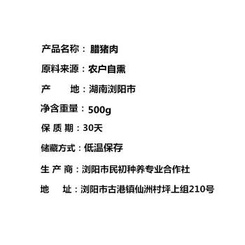 浏阳市农家柴火自熏腊肉 500g