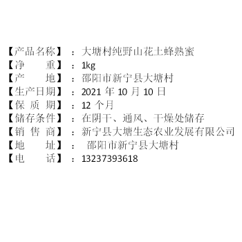 大塘村纯野山花土蜂熟蜜 1kg