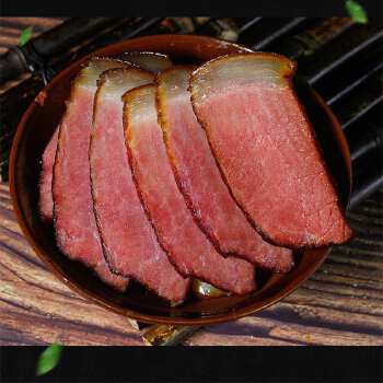 湘西腊肉是土家和苗家人民独创的一种具有特殊风味的地方名产,它是经过食用盐和特殊香料腌制,再用柏树叶火烧熏制而成,经过时间的推移,散去烟味,化去了油腻,肥的瘦的咬在一起,香嫩丰腴,滋味鲜美。