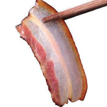 湘西腊肉是土家和苗家人民独创的一种具有特殊风味的地方名产,它是经过食用盐和特殊香料腌制,再用柏树叶火烧熏制而成,经过时间的推移,散去烟味,化去了油腻,肥的瘦的咬在一起,香嫩丰腴,滋味鲜美。