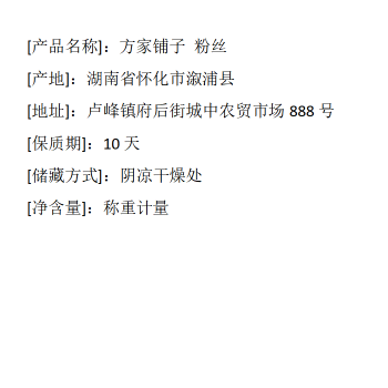溆浦县 方家铺子 粉丝 140/件