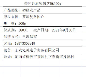 茶陵县农家黑芝麻500g