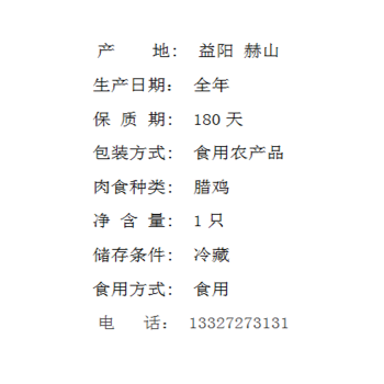 赫山 益浮茗 腊鸡 1KG/只
