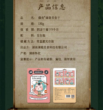 沅陵县味之天偶鱼牌绿茶青鱼干130克