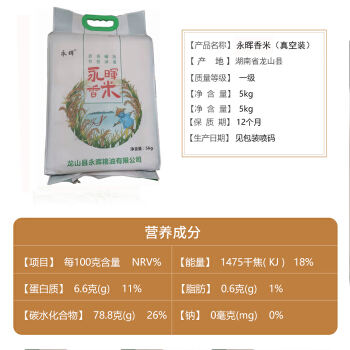 龙山县高山永晖香米5Kg一级大米真空包装