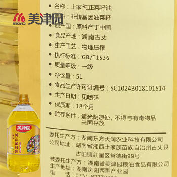 宁乡市 同膳 湘西古丈美津园土家纯正菜籽油5L
