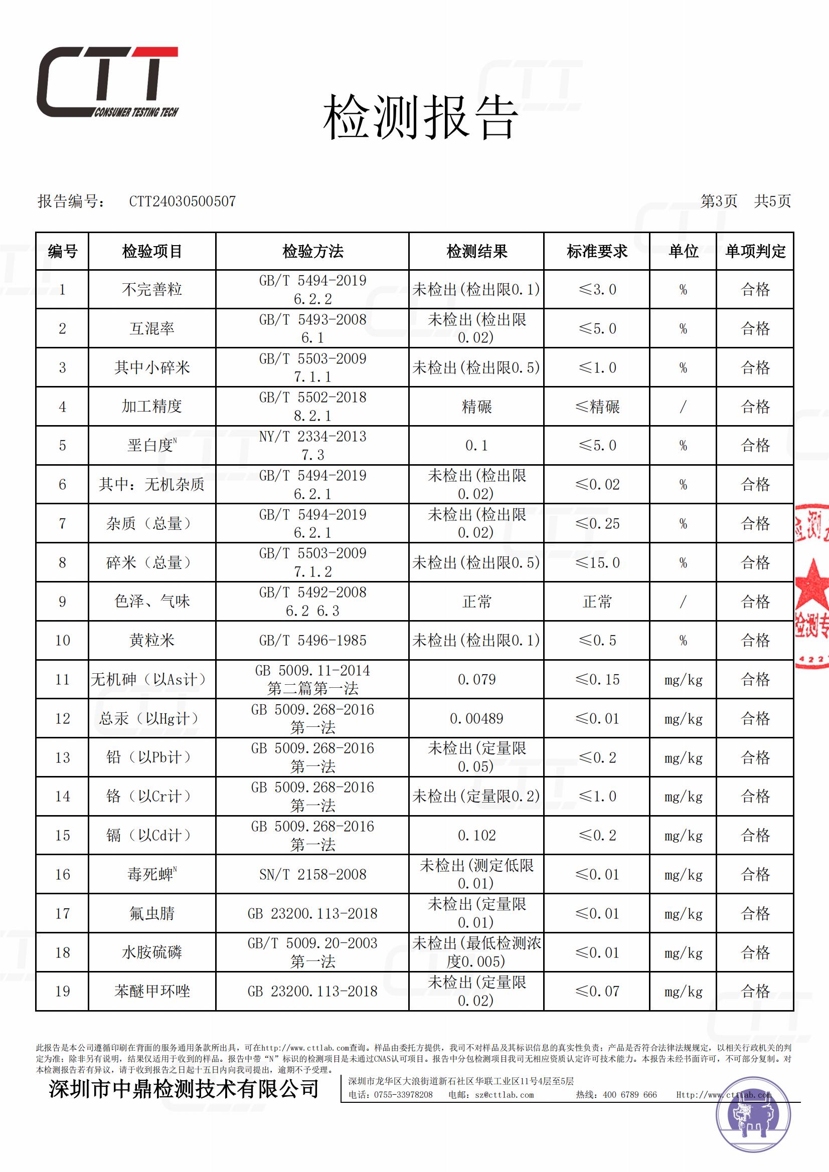 普通籼米质量指标