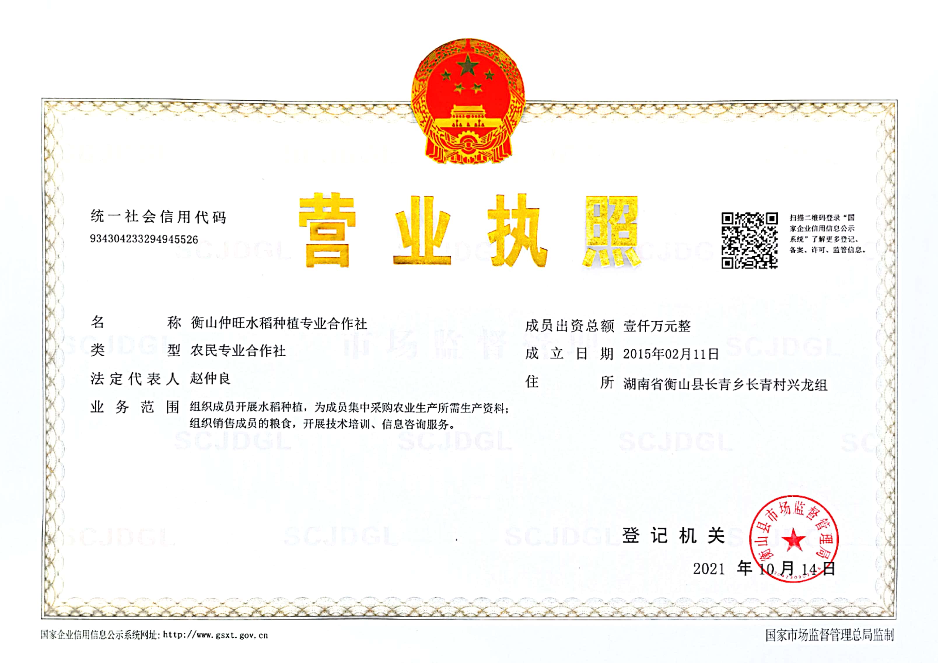 衡山仲旺水稻种植专业合作社