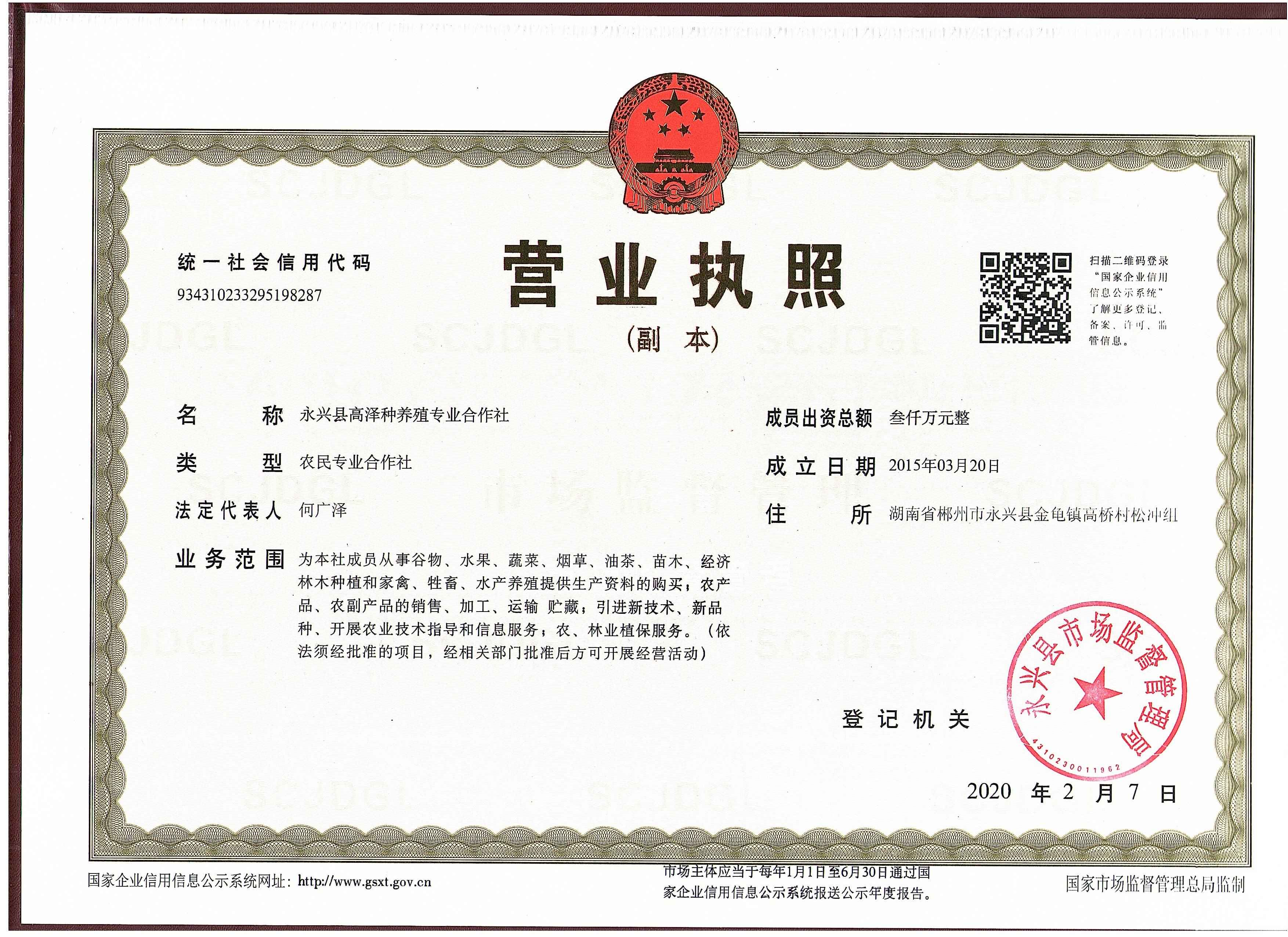 永兴县高泽种养殖专业合作社