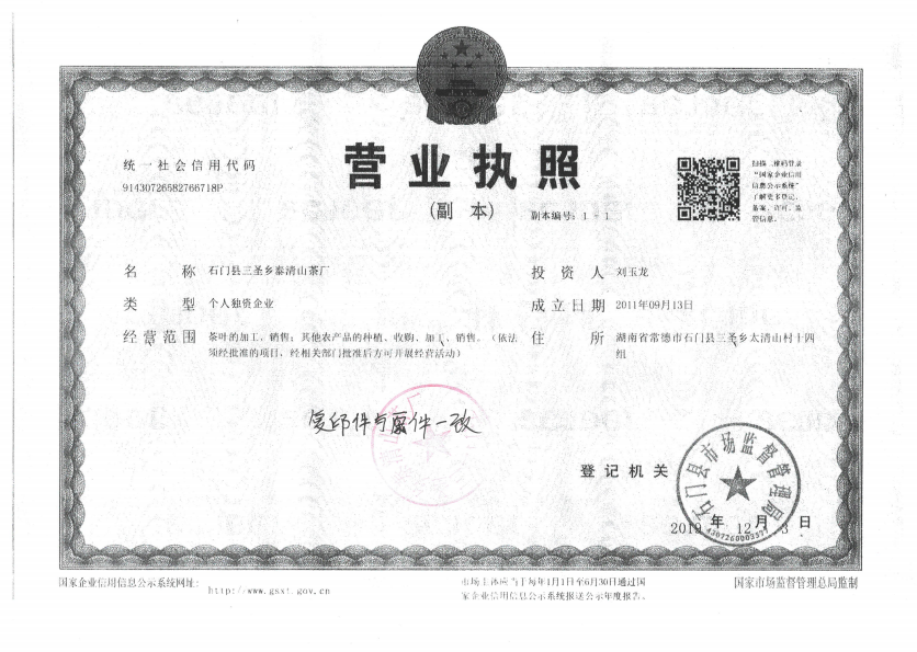 石门县三圣乡泰清山茶厂