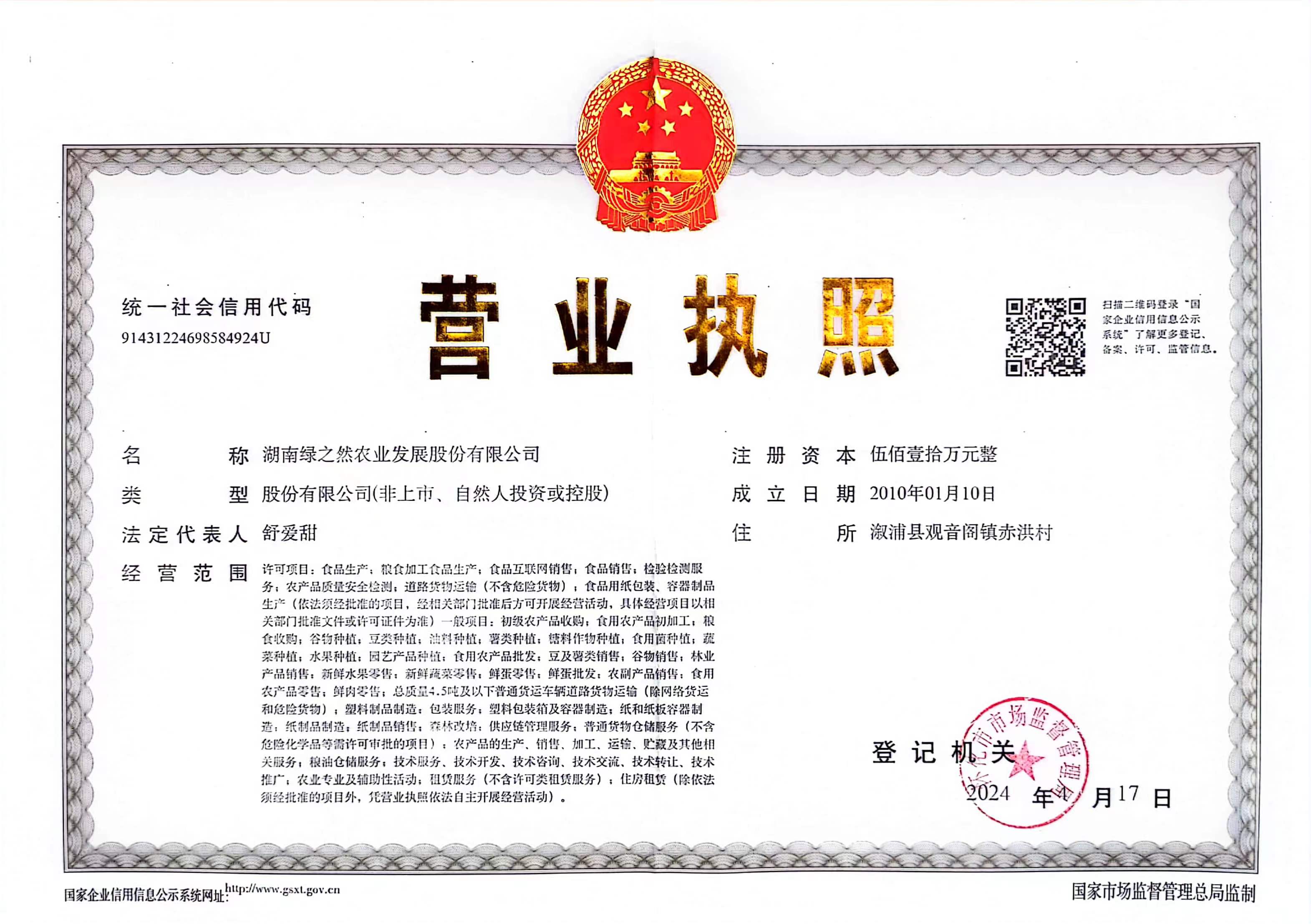 湖南绿之然农业发展股份有限公司