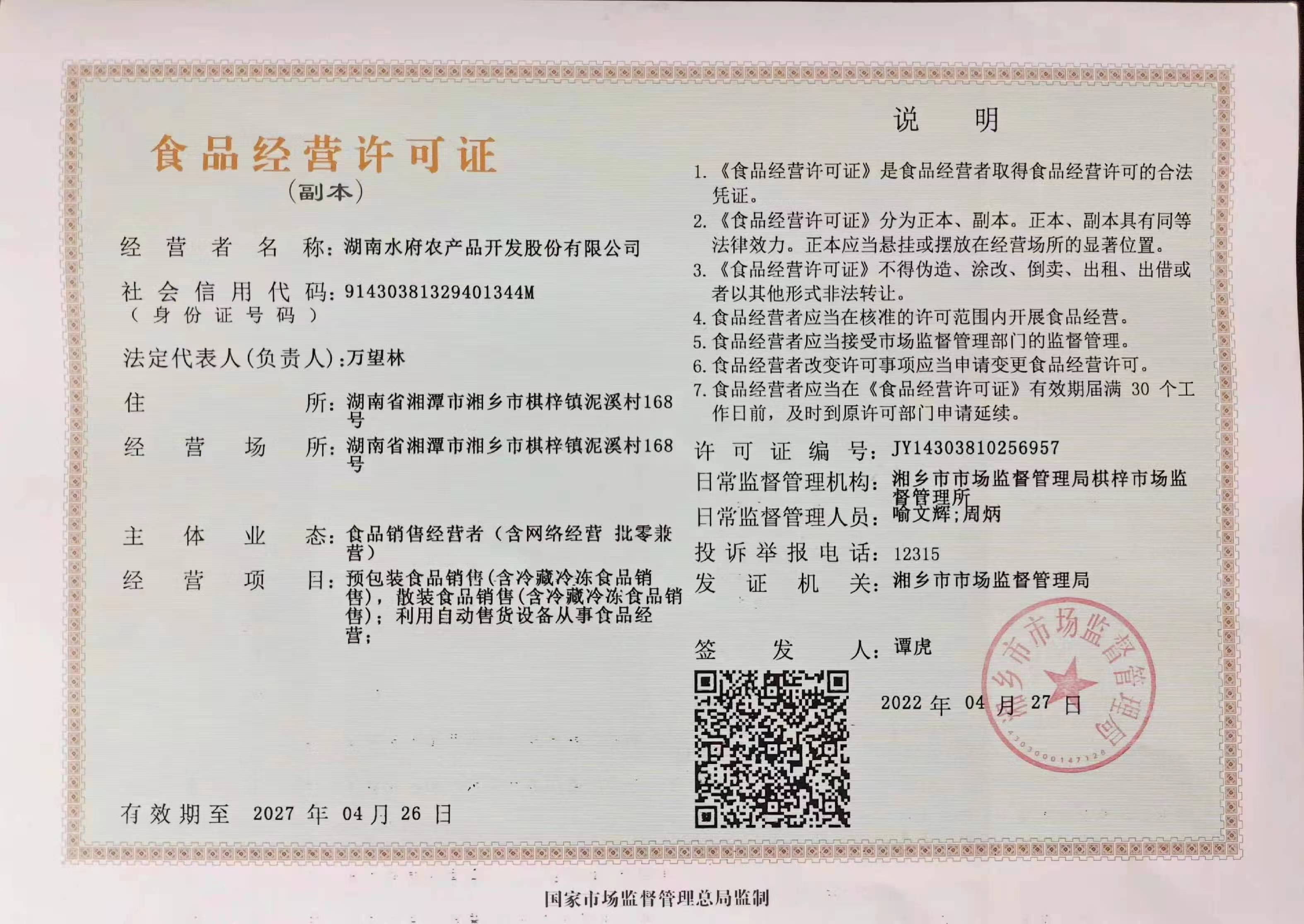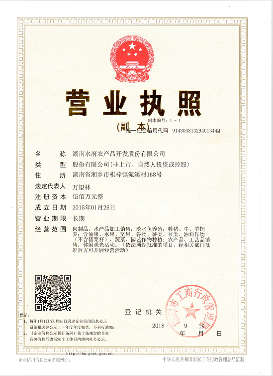 湖南水府农产品开发股份有限公司
