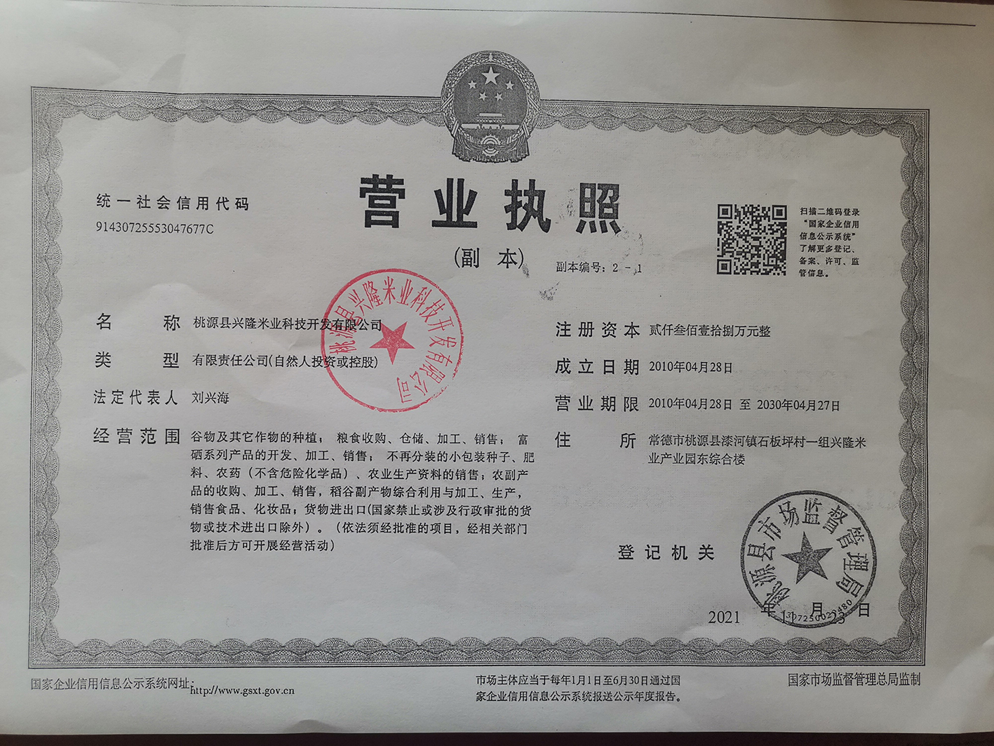 桃源县兴隆米业科技开发有限公司