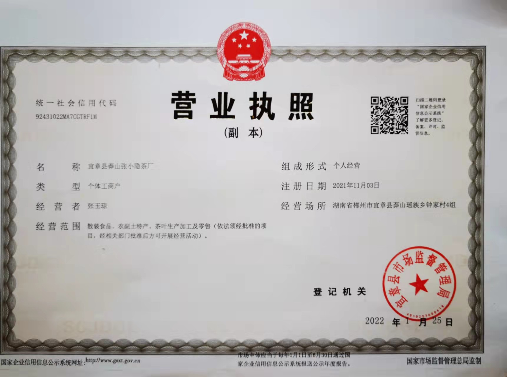 宜章县莽山张小隐茶厂