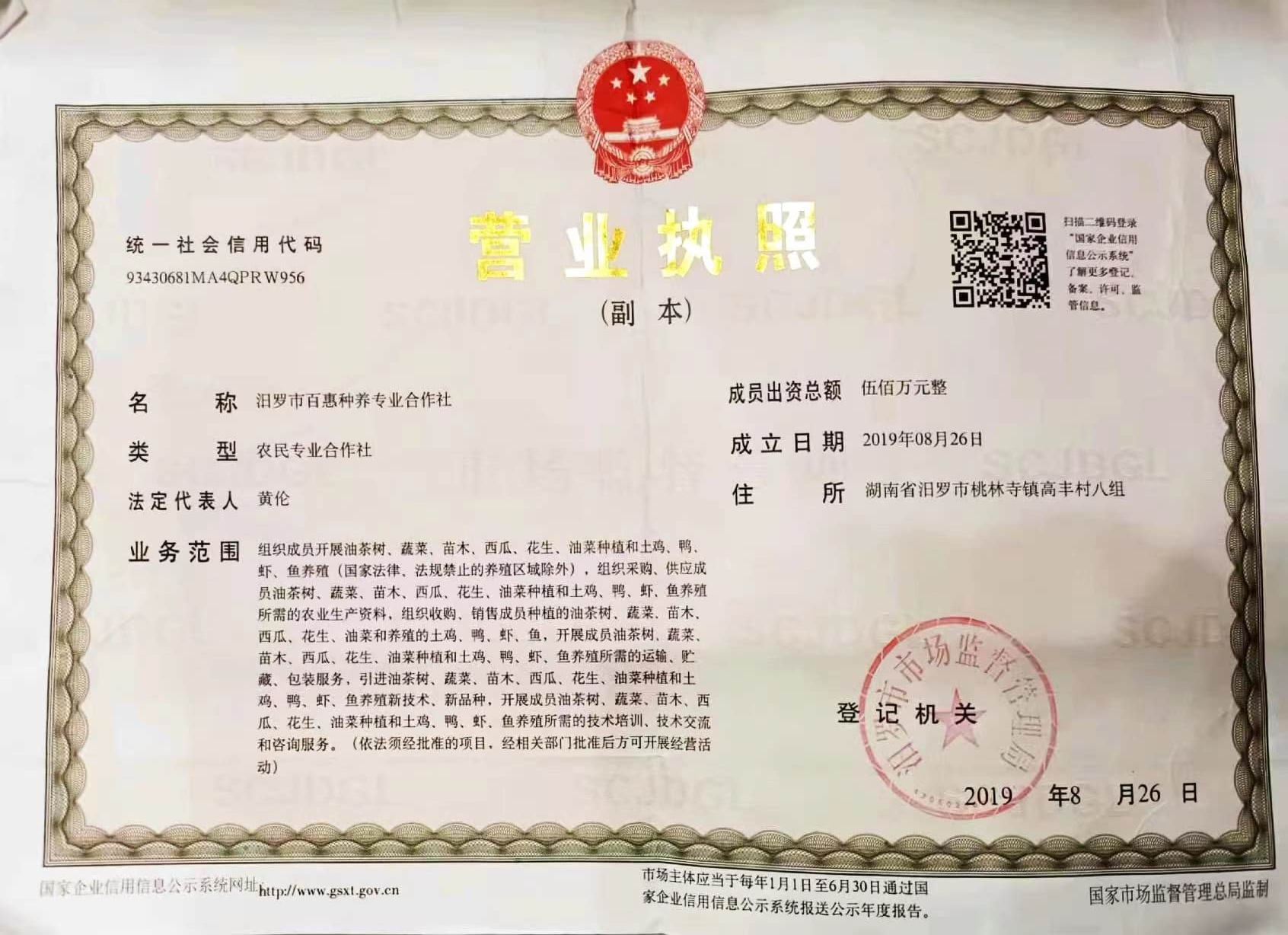 汨罗市百惠种养专业合作社