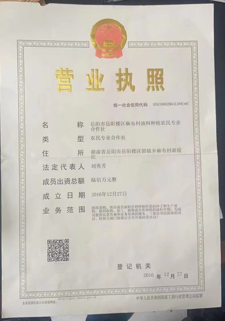 岳阳市岳阳楼区麻布村油料种植农民专业合作社