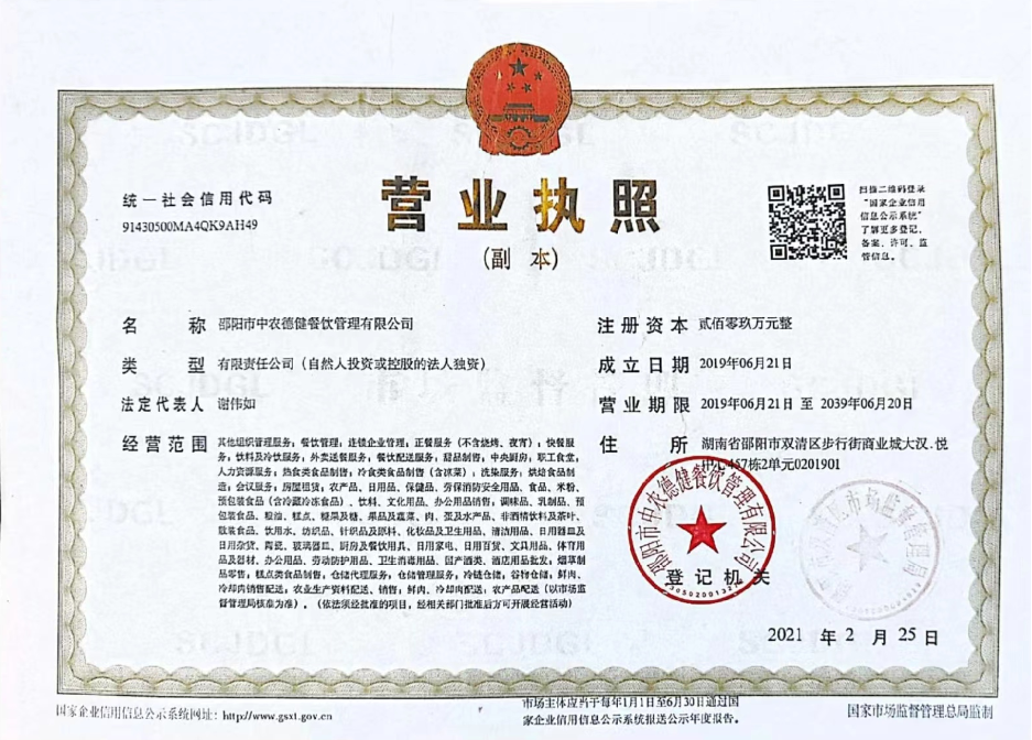 邵阳市中农德健餐饮管理有限公司