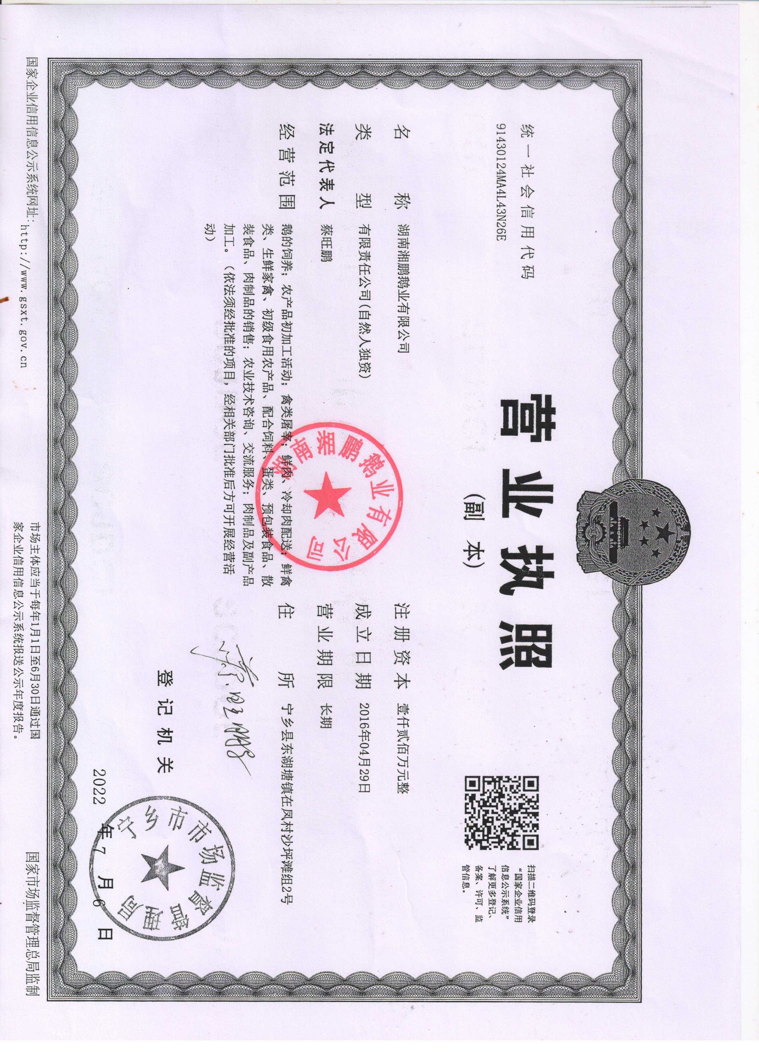 湖南湘鹏鹅业有限公司