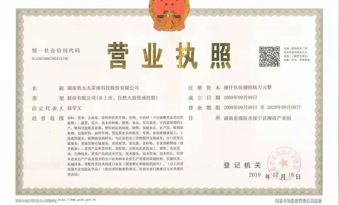 湖南贵太太茶油科技股份有限公司
