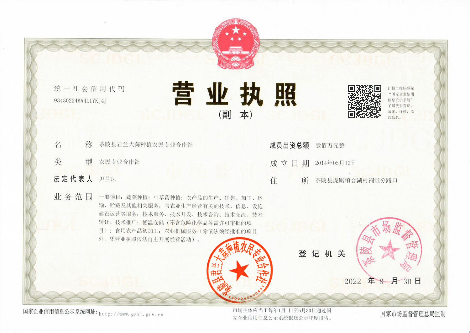 茶陵县君兰大蒜种植农民专业合作社
