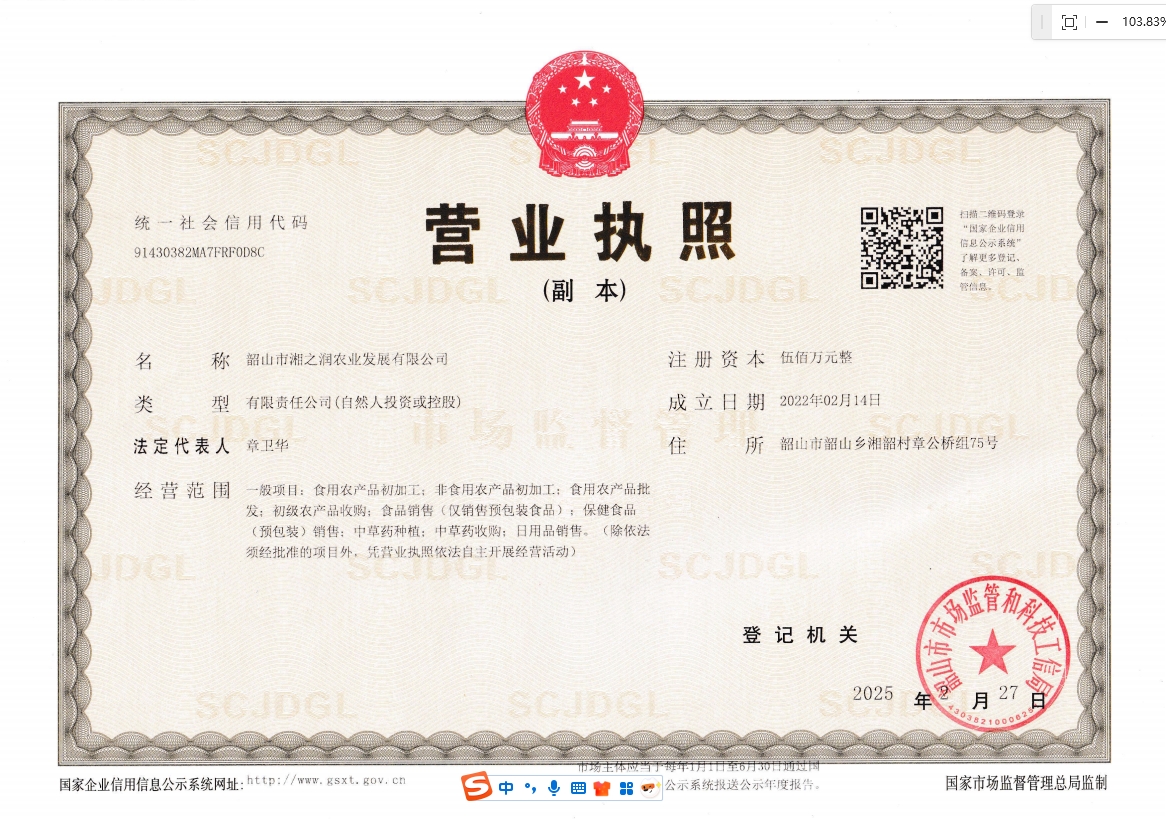 韶山市湘之润农业发展有限公司