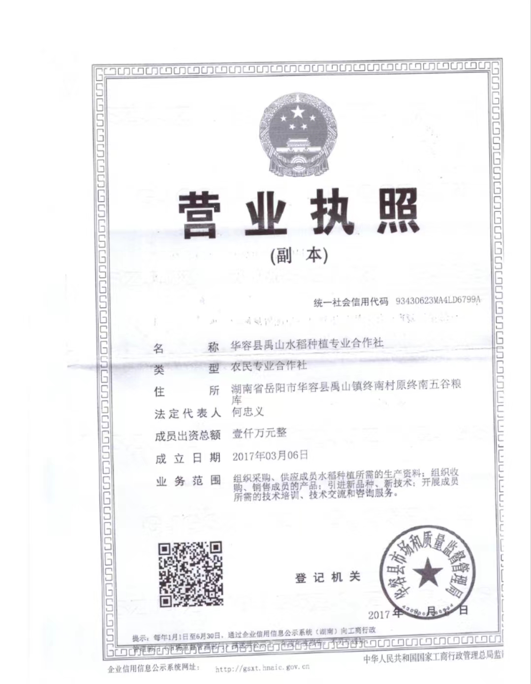 华容县禹山水稻种植专业合作社