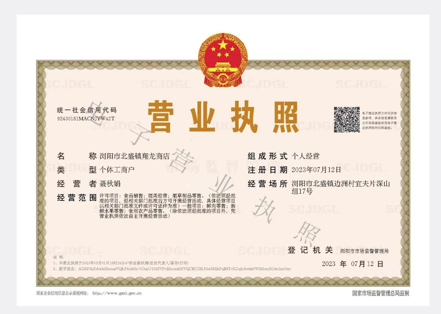 浏阳市北盛镇翔龙商店
