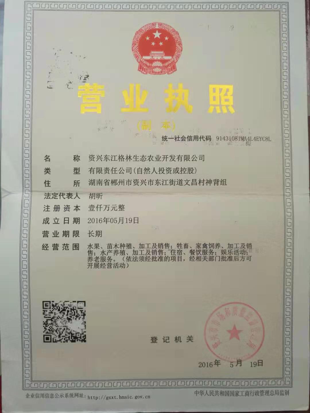 资兴东江格林生态农业开发有限公司