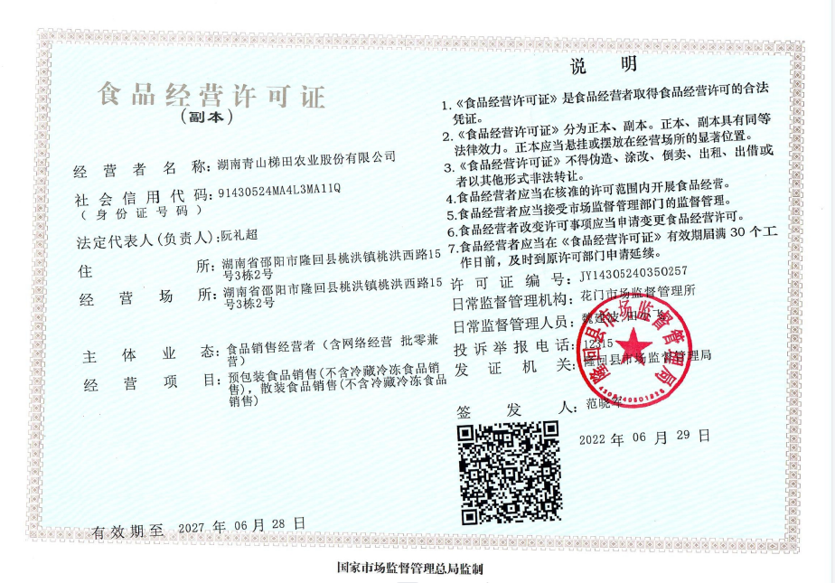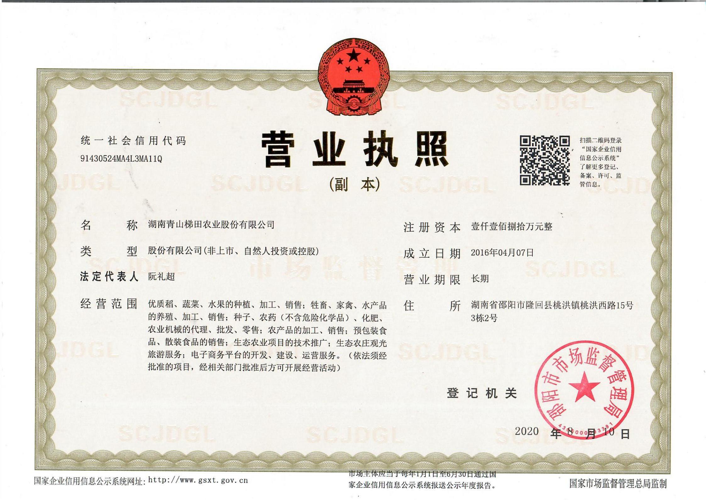 湖南青山梯田农业股份有限公司