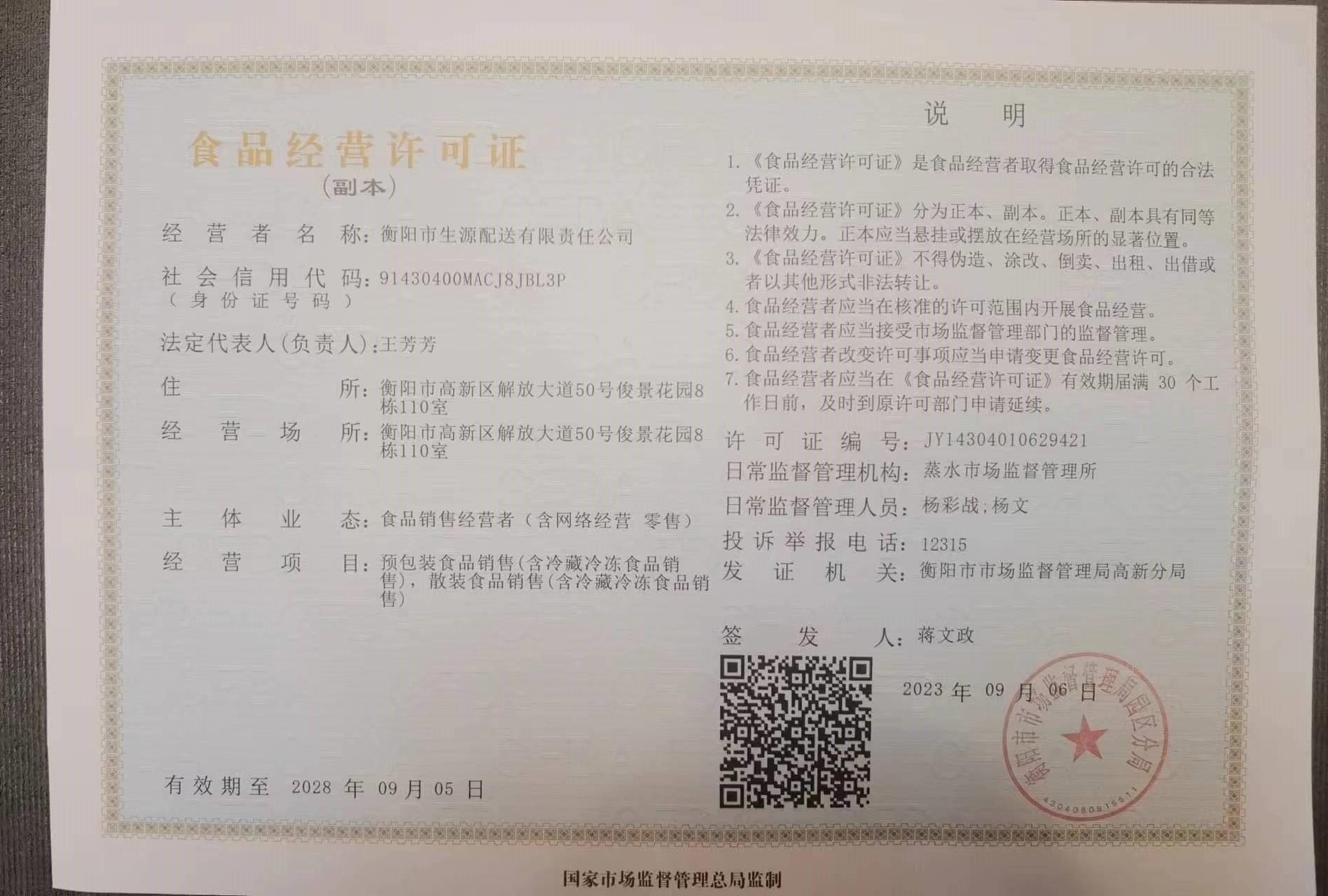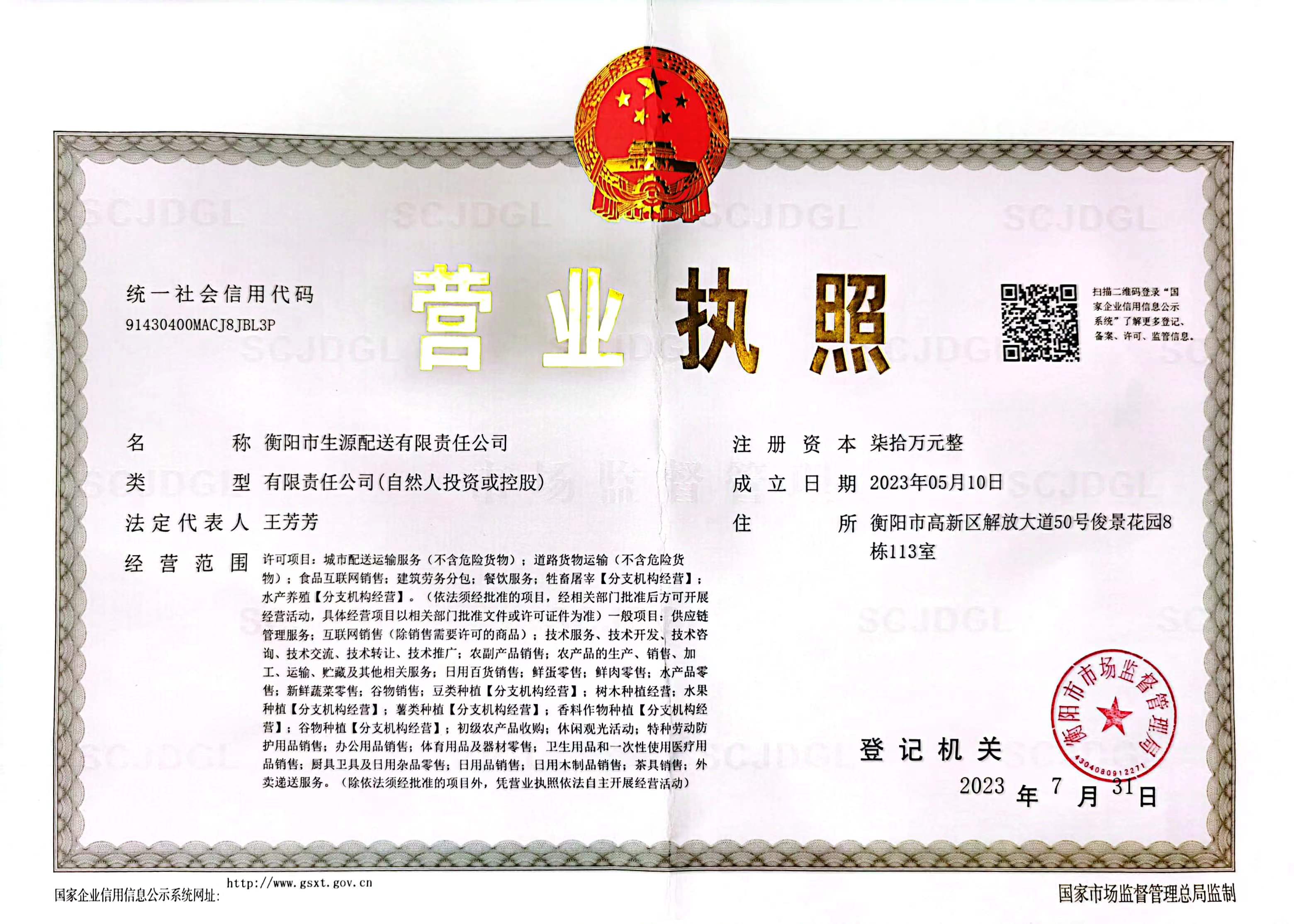 衡阳市生源配送有限责任公司