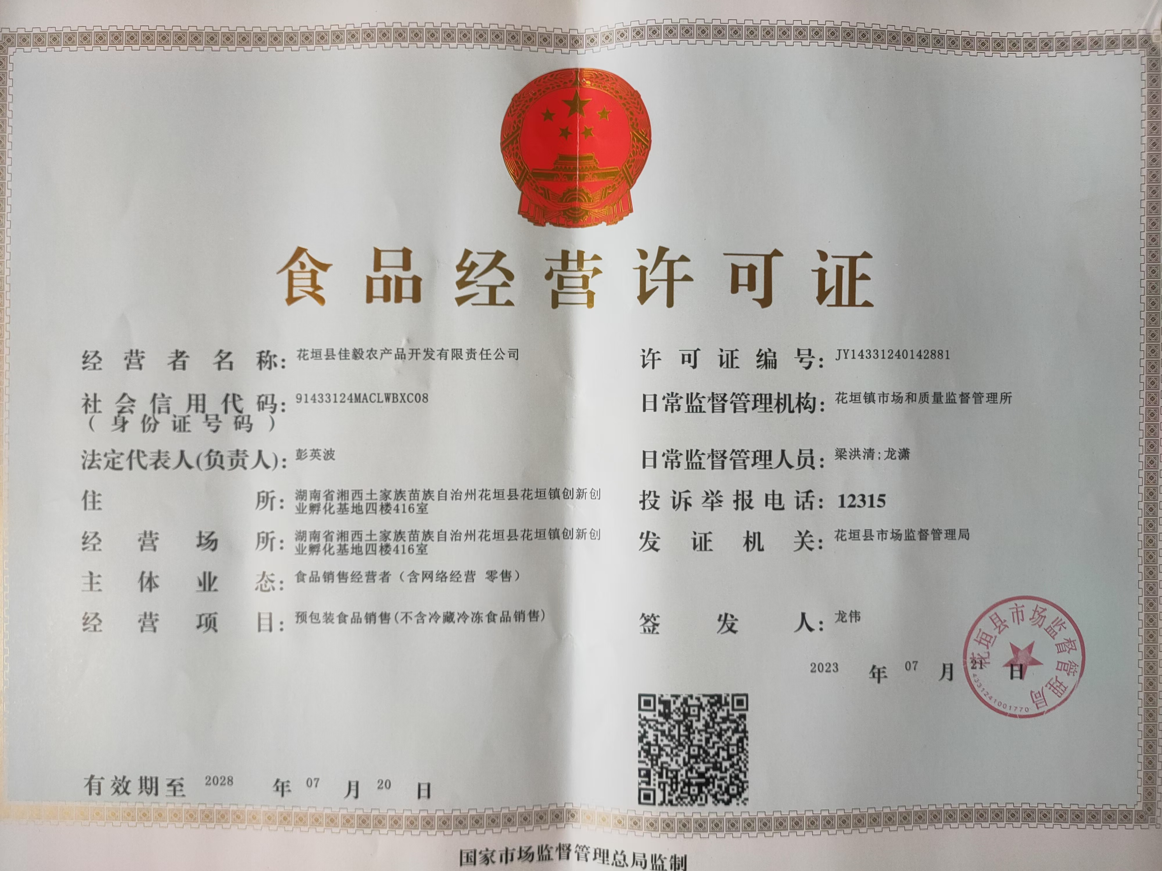 花垣县佳毅农产品开发有限责任公司