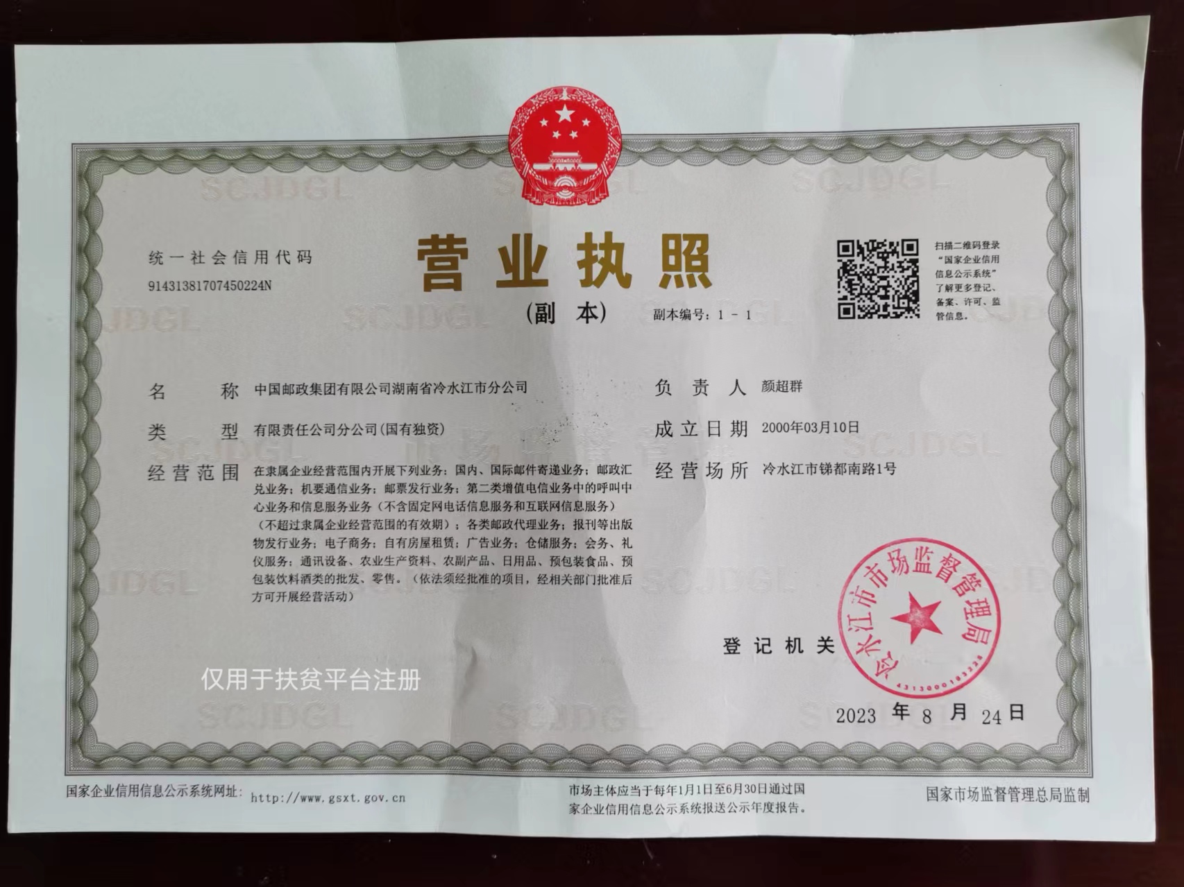 中国邮政集团有限公司湖南省冷水江市分公司