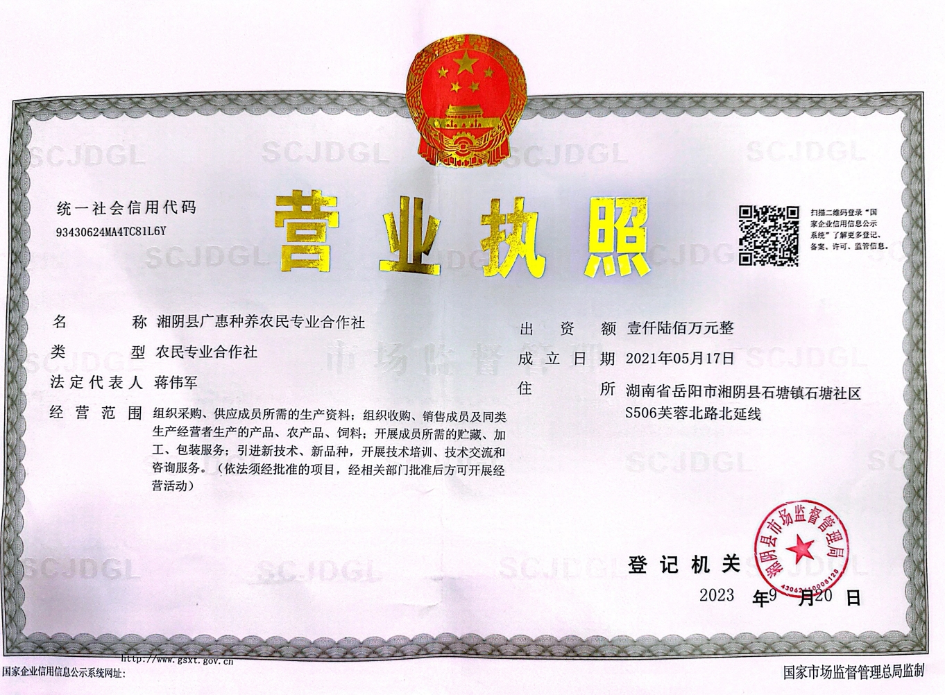 湘阴县广惠种养农民专业合作社