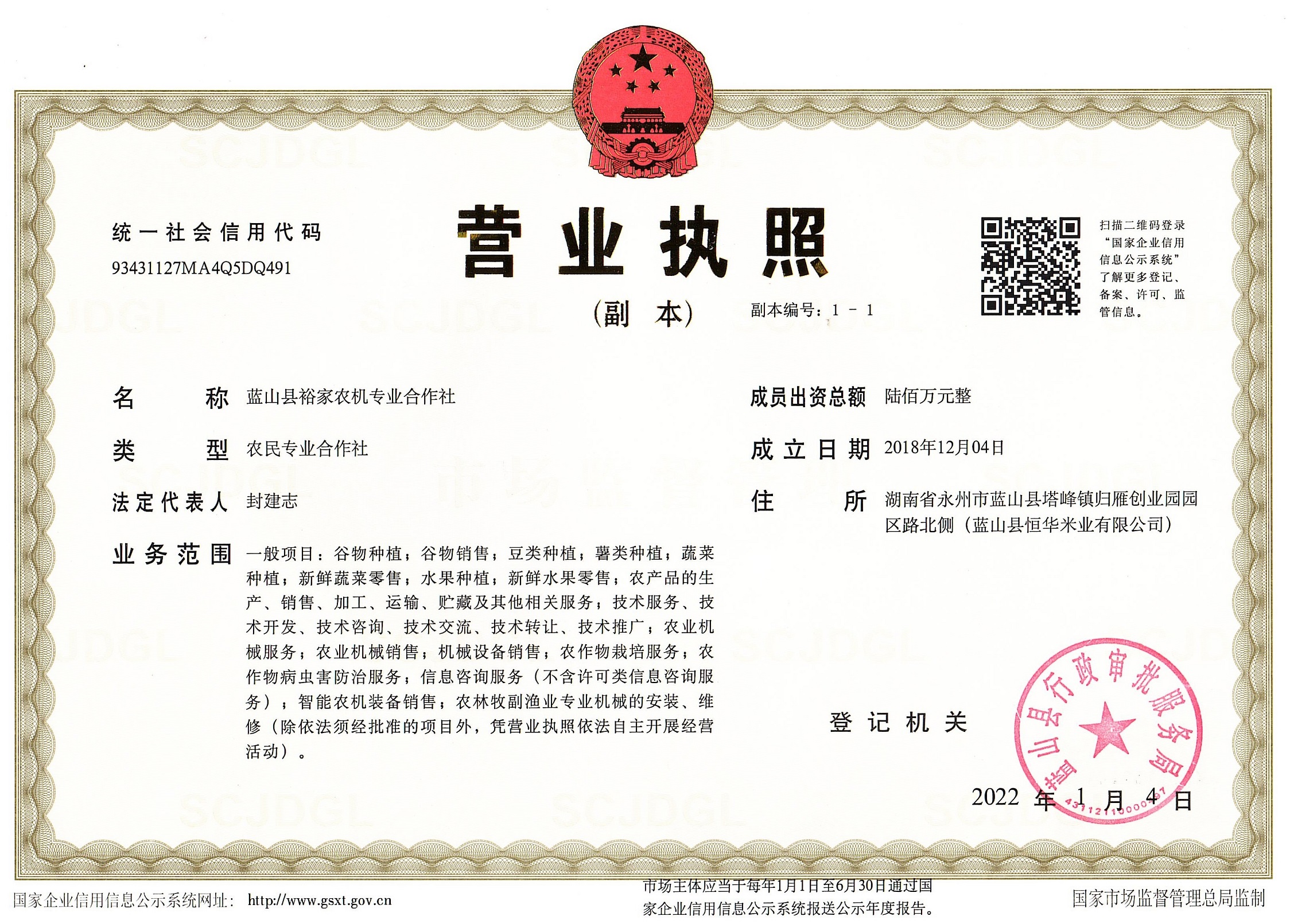 蓝山县裕家农机专业合作社