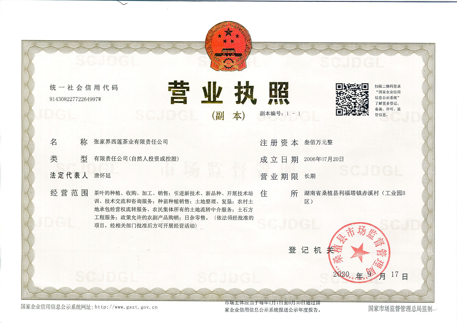 张家界西莲茶业有限责任公司