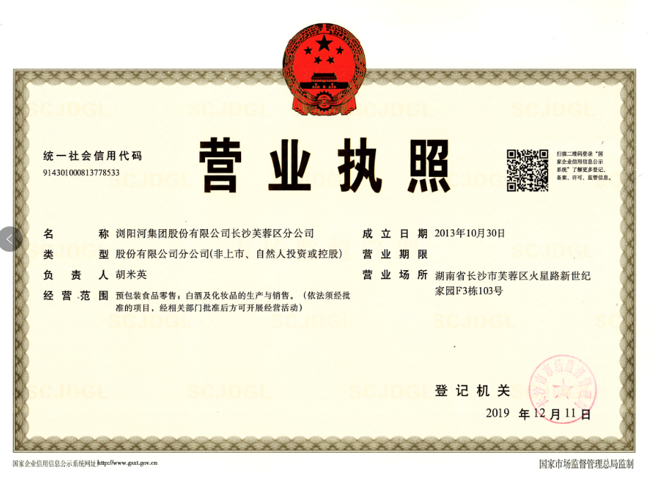 浏阳河集团股份有限公司长沙芙蓉区分公司