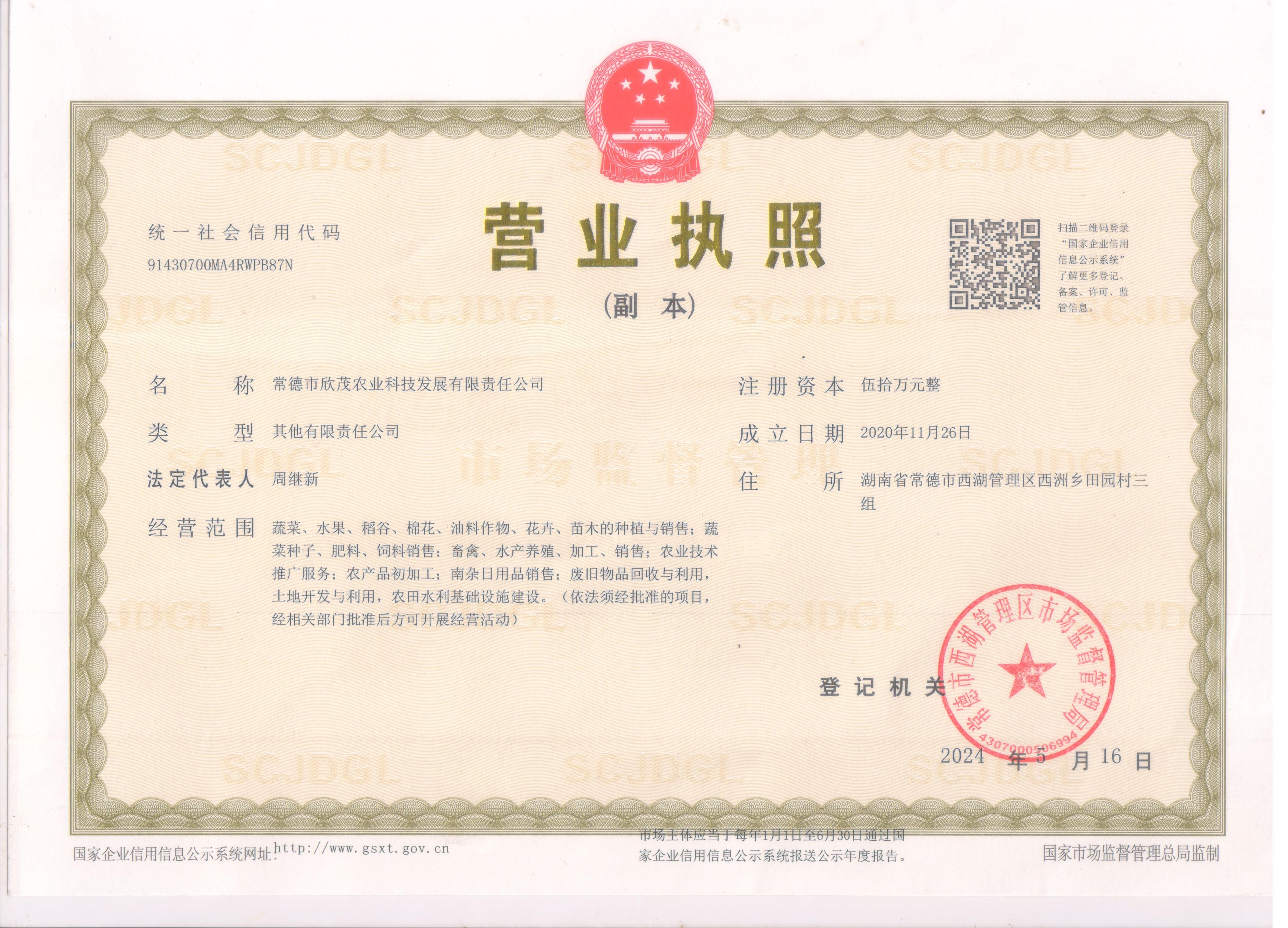 常德市欣茂农业科技发展有限责任公司