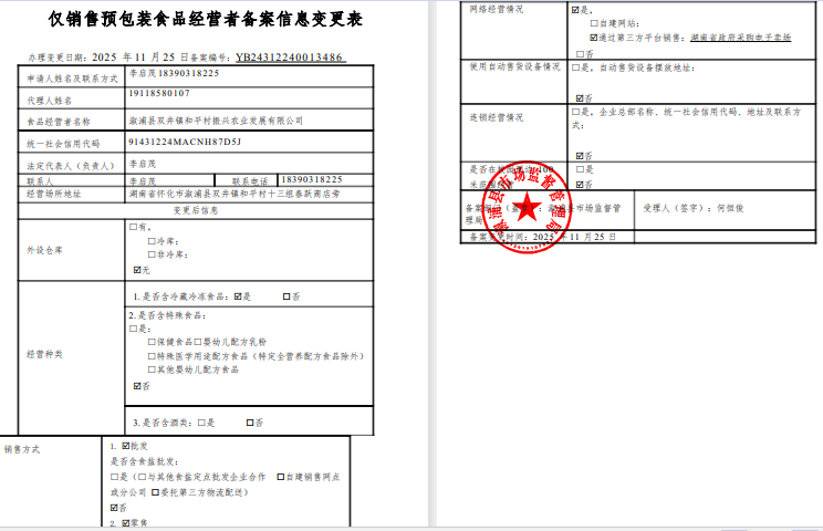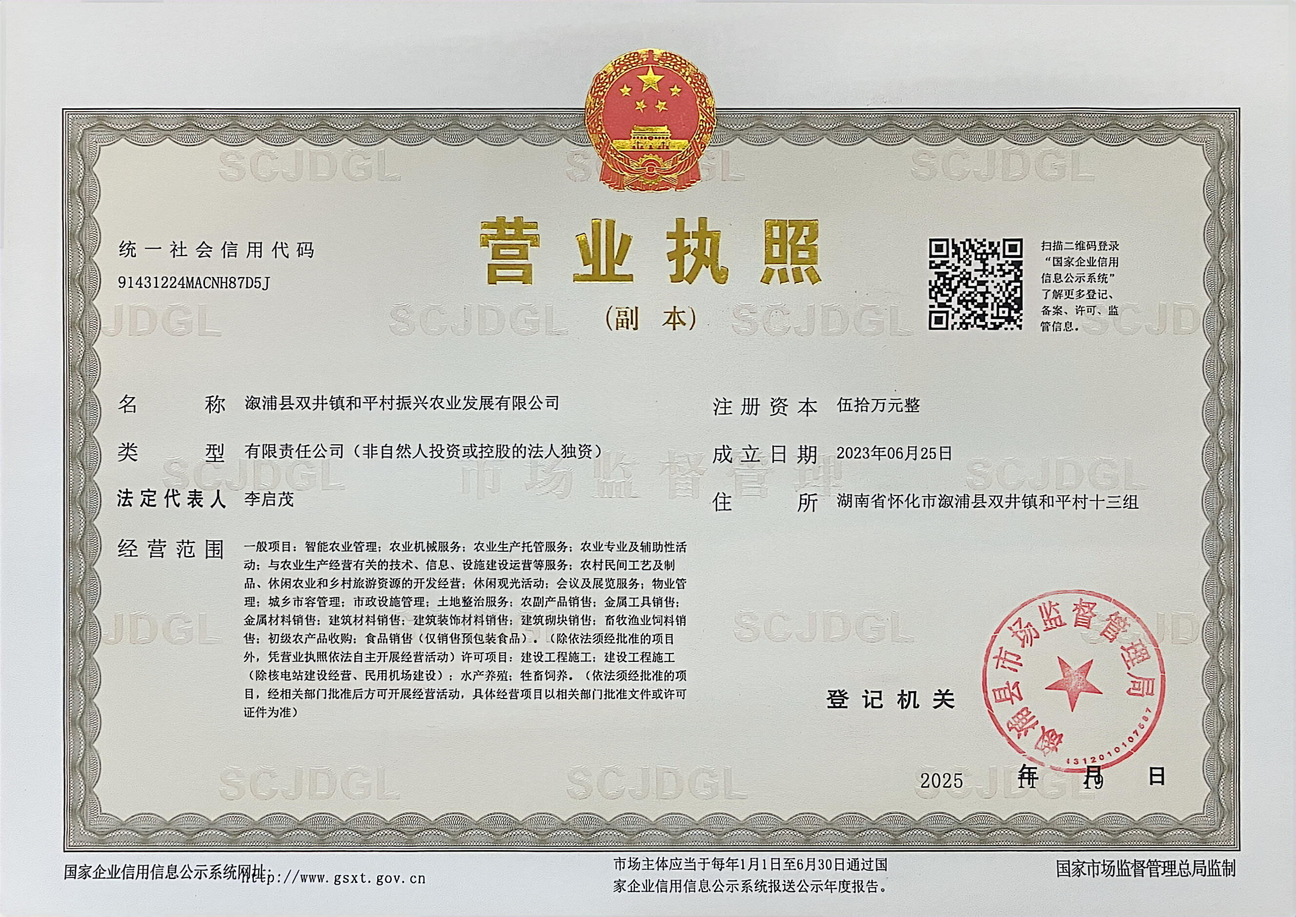 溆浦县双井镇和平村振兴农业发展有限公司