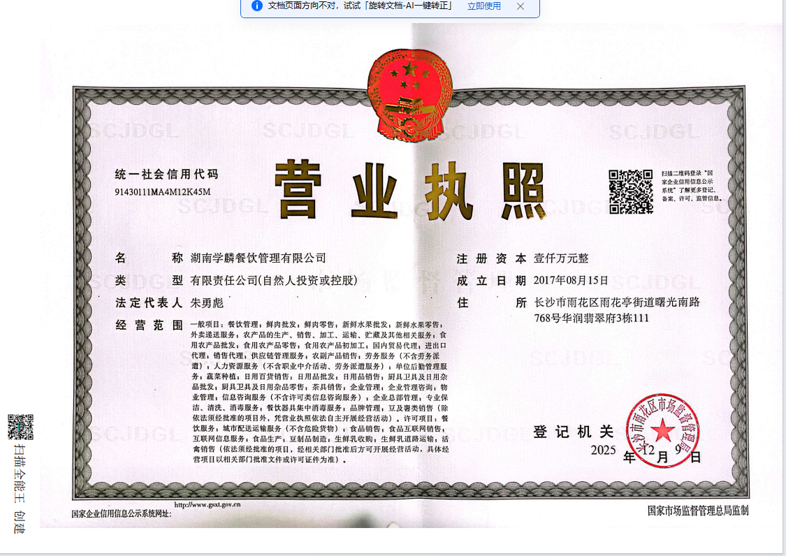 湖南学麟餐饮管理有限公司