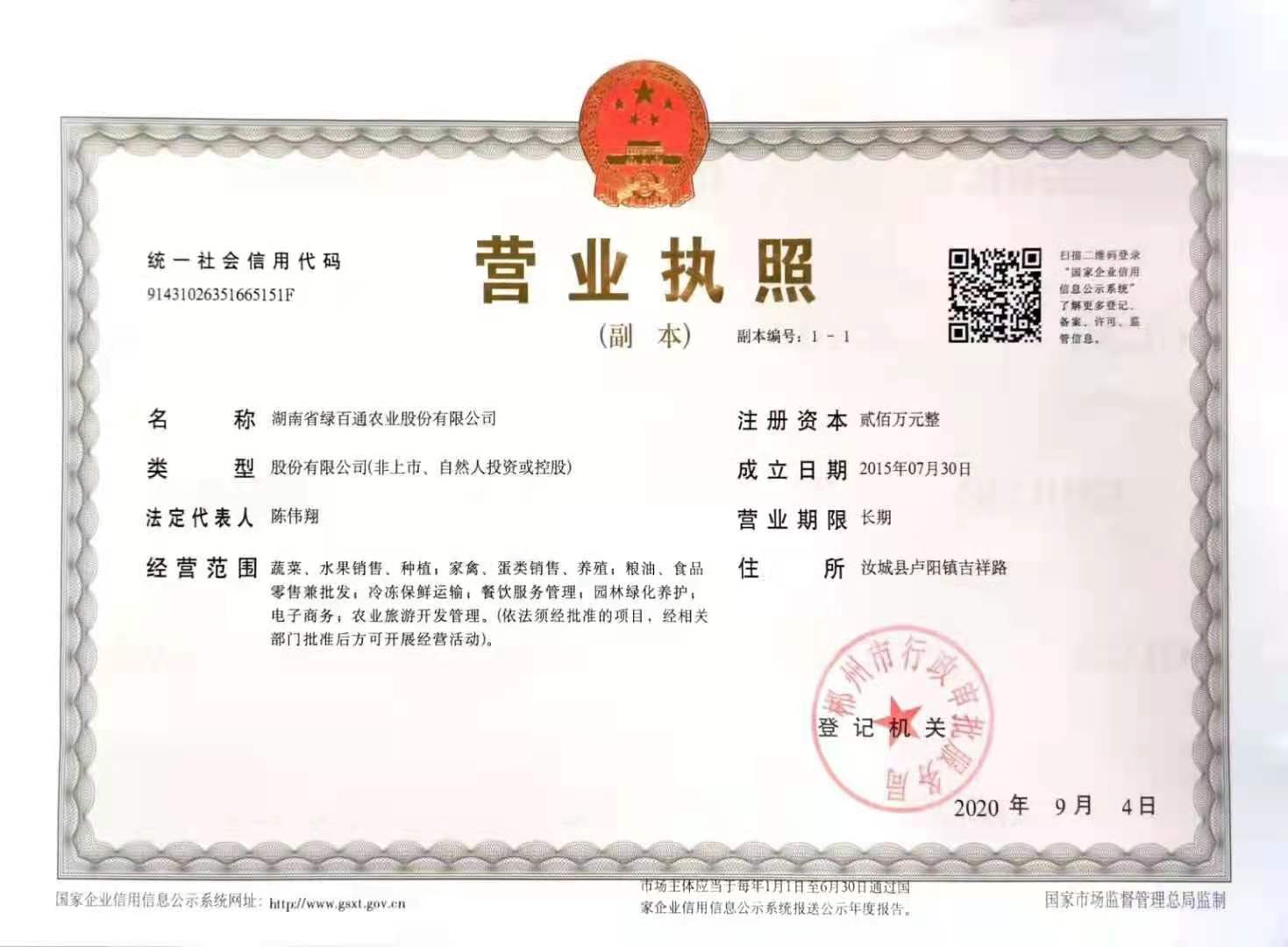 湖南省绿百通农业股份有限公司