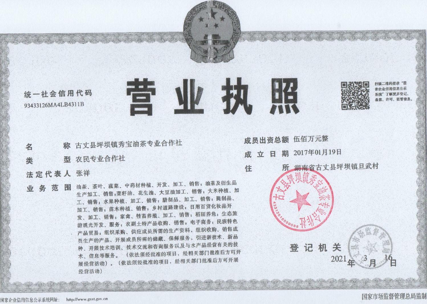 古丈县坪坝镇秀宝油茶专业合作社