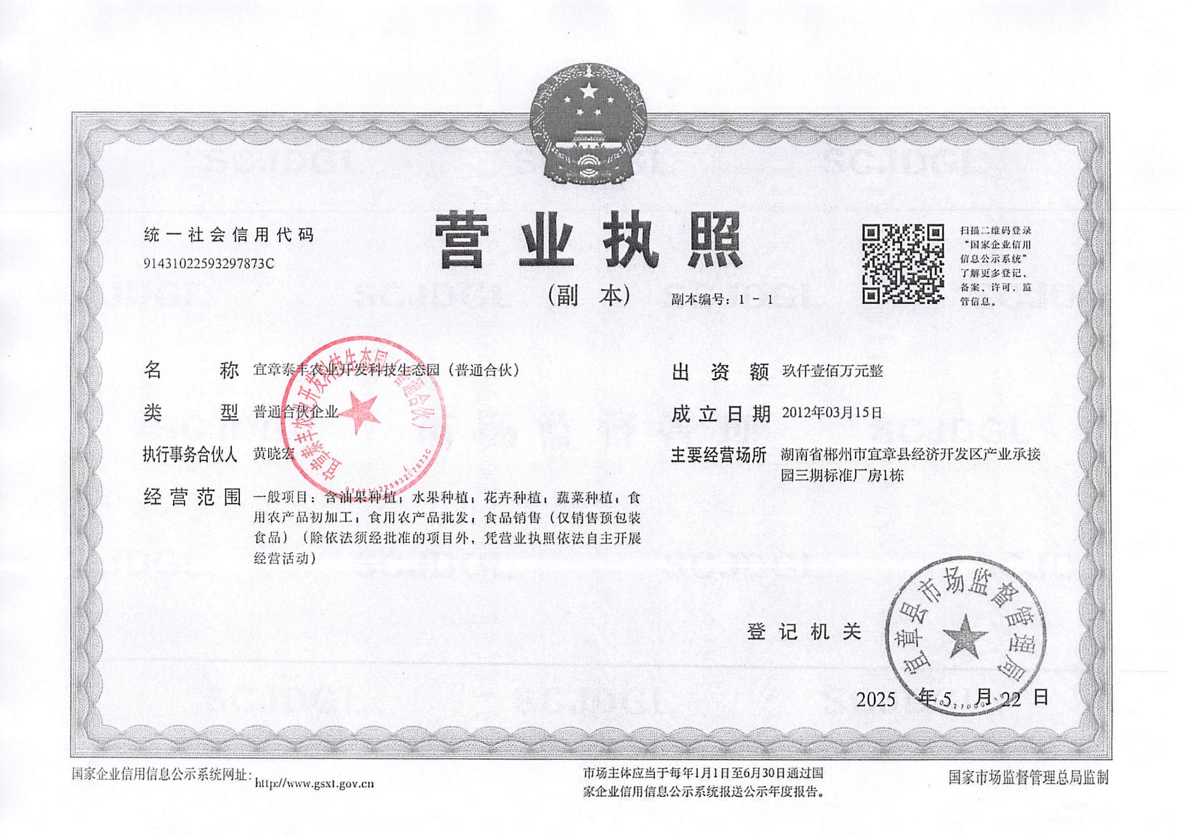 宜章泰丰农业开发科技生态园(普通合伙)