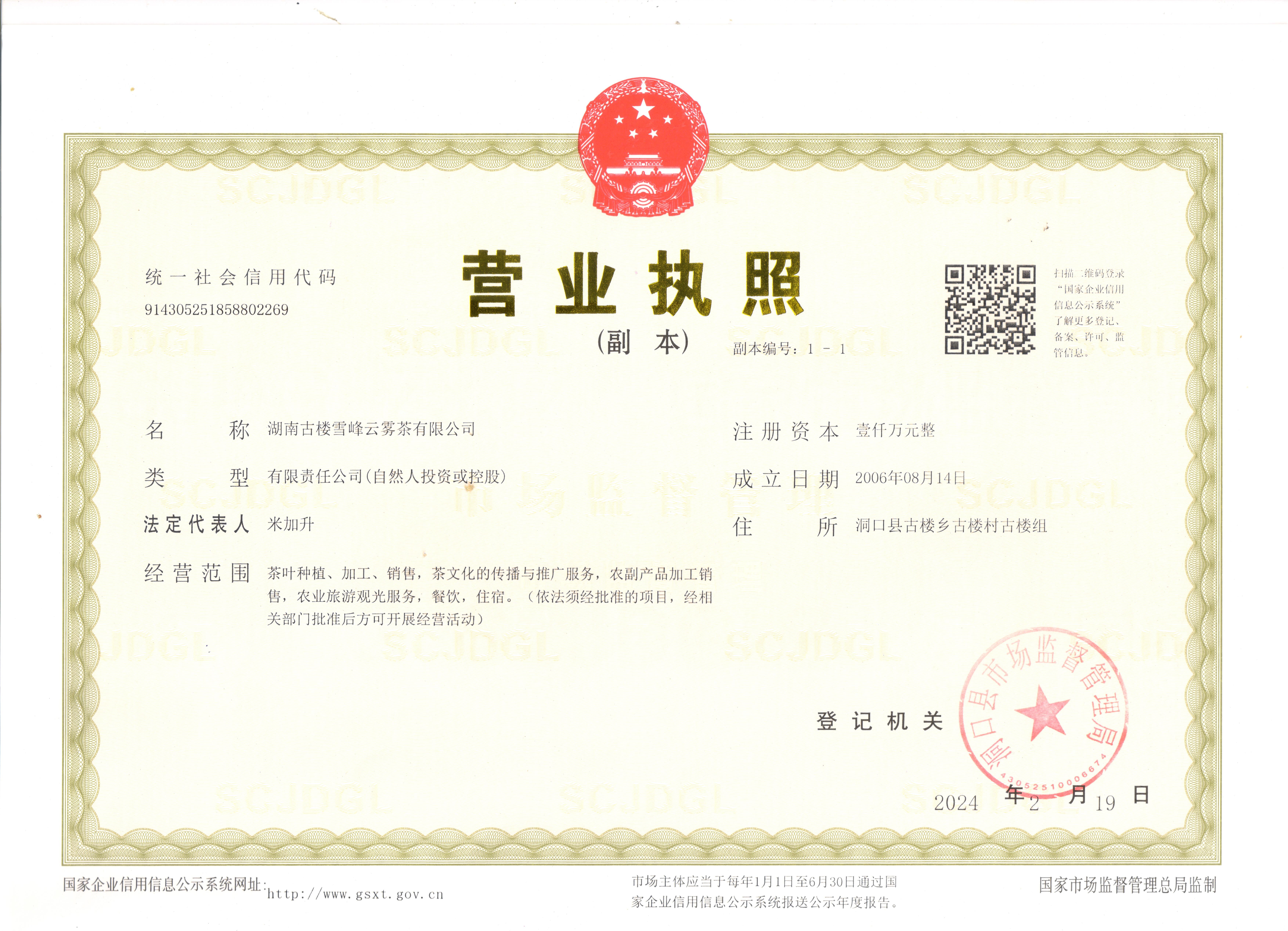 湖南古楼雪峰云雾茶有限公司