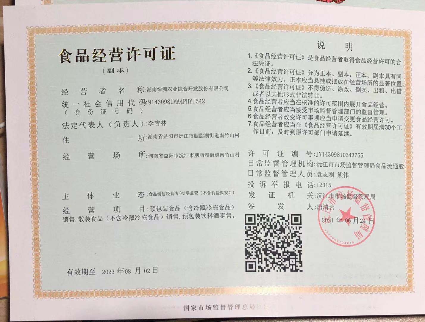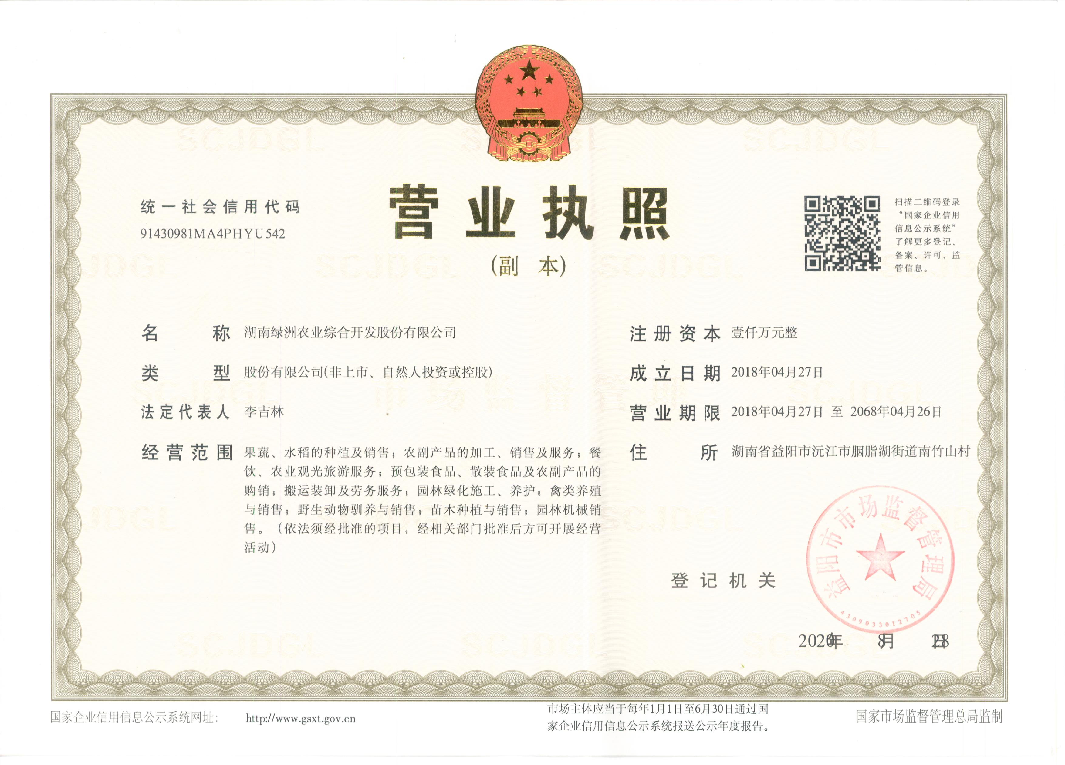 湖南绿洲农业综合开发股份有限公司