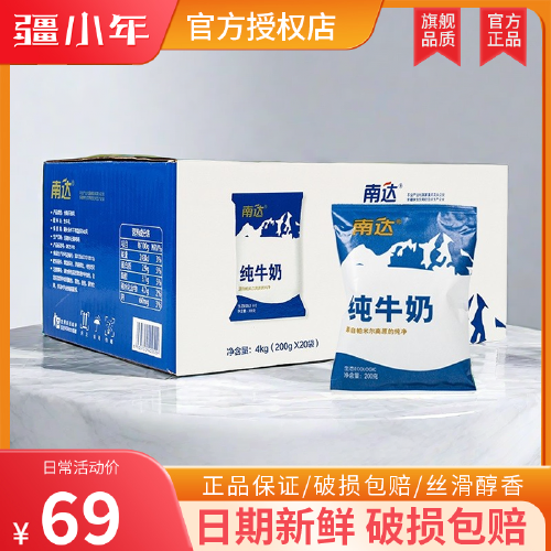 新疆喀什南达200mL南达利乐枕纯牛奶200g*20袋