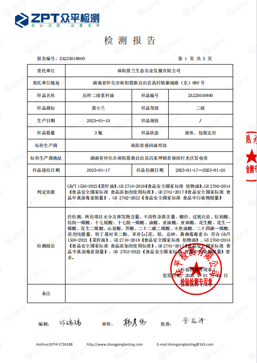压榨低介酸菜籽油质量指标