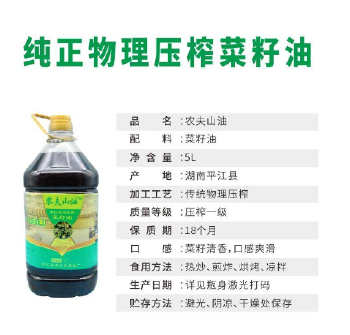 【菜籽油】 平江县农夫山油自然非转基因古法压榨5L菜籽油