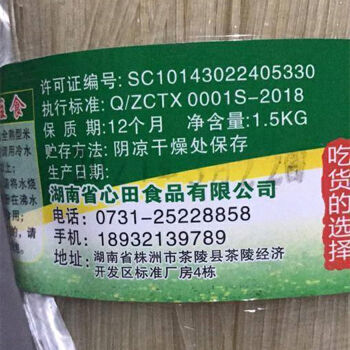 茶陵县田心米粉1.5Kg