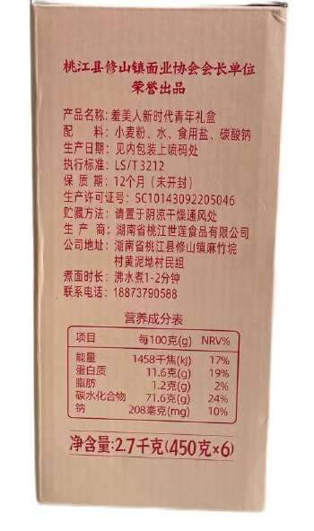 湖南益阳桃江 羞美人新时代青年礼盒 桃江修山面 手工日晒面 450g*6包